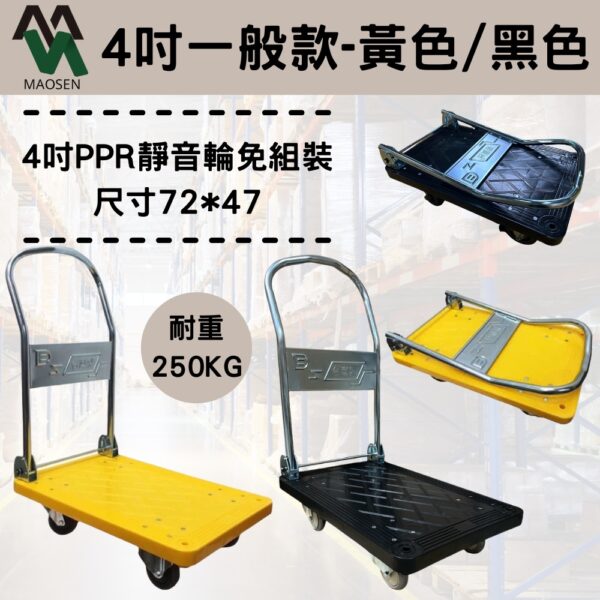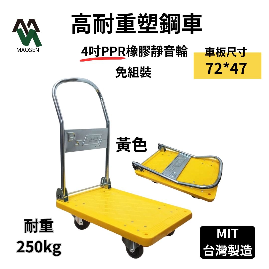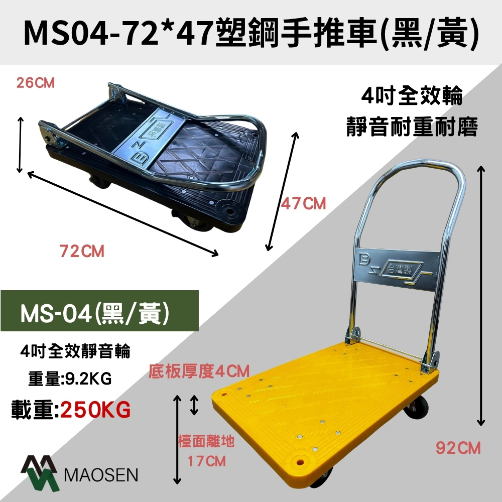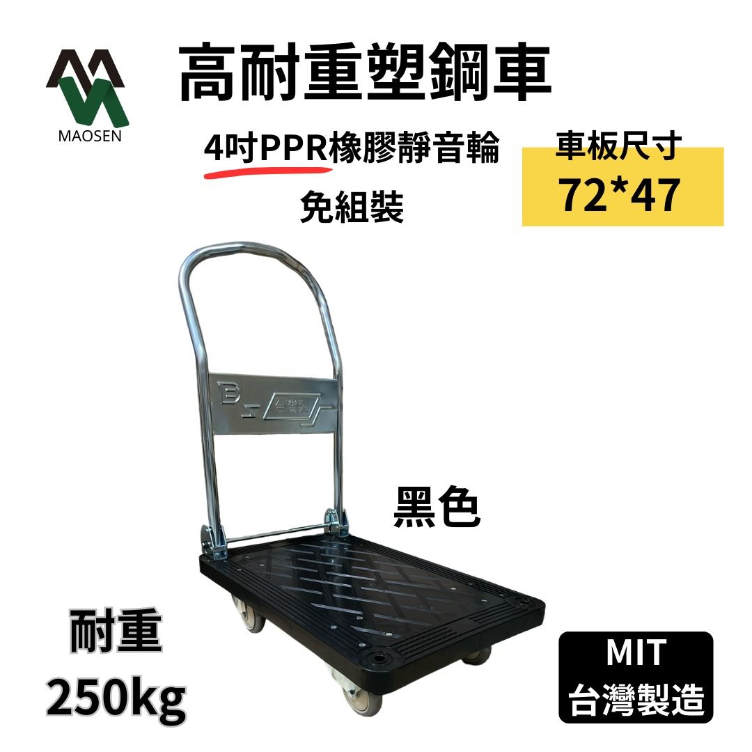 MAOSEN 茂森生活工廠 MS04台製塑鋼板車 72*47 靜音4吋耐重輪 耐重250kg 四輪板車 折疊手推車