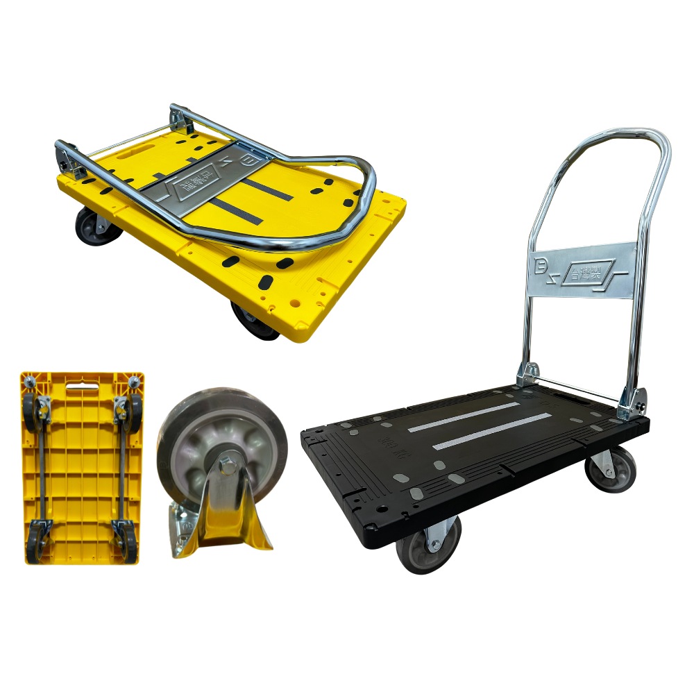 [茂森🌲生活工廠]MIT塑鋼板車 HS960黑旋風 靜音TPR加大5吋耐重輪 90*60 強化雙鋼條300KG 四輪板車折疊收納四輪推車