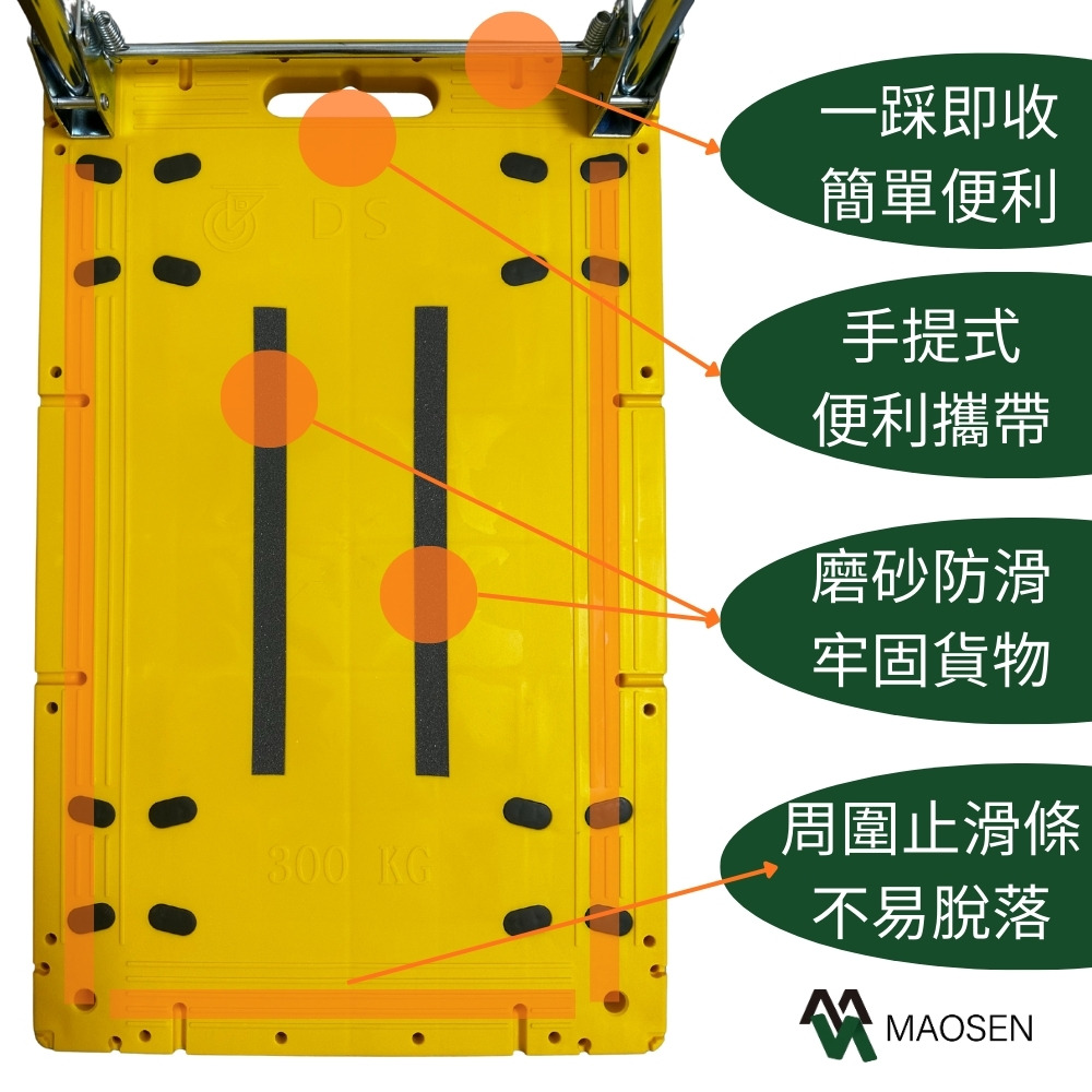 MAOSEN 茂森生活工廠 MS05台製塑鋼板車 煞車款 全效靜音加大5吋輪 76*47 強化款300KG 折疊手推車